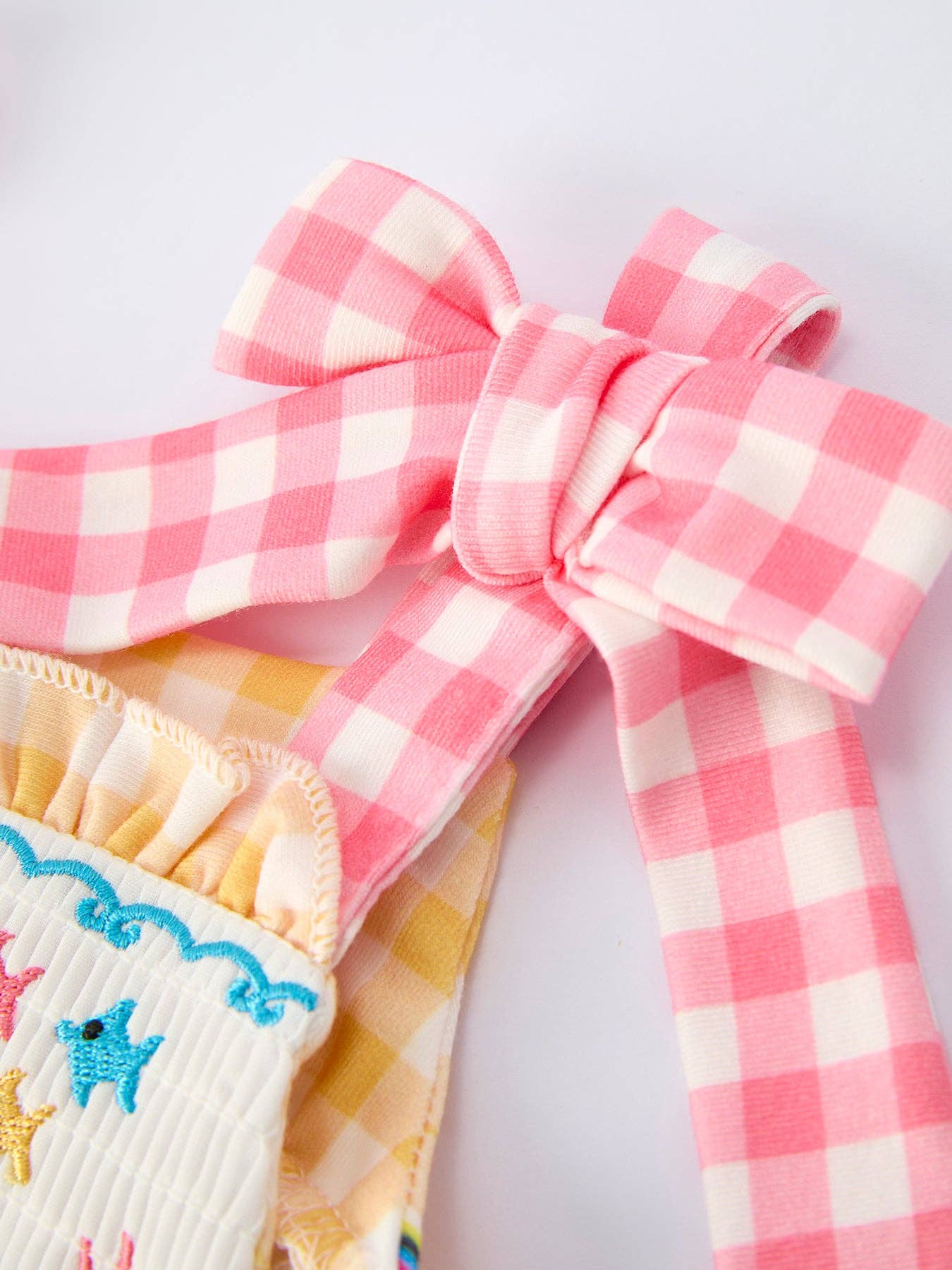 Fish Embroidery Smocking Plaid Baby Girl Romper