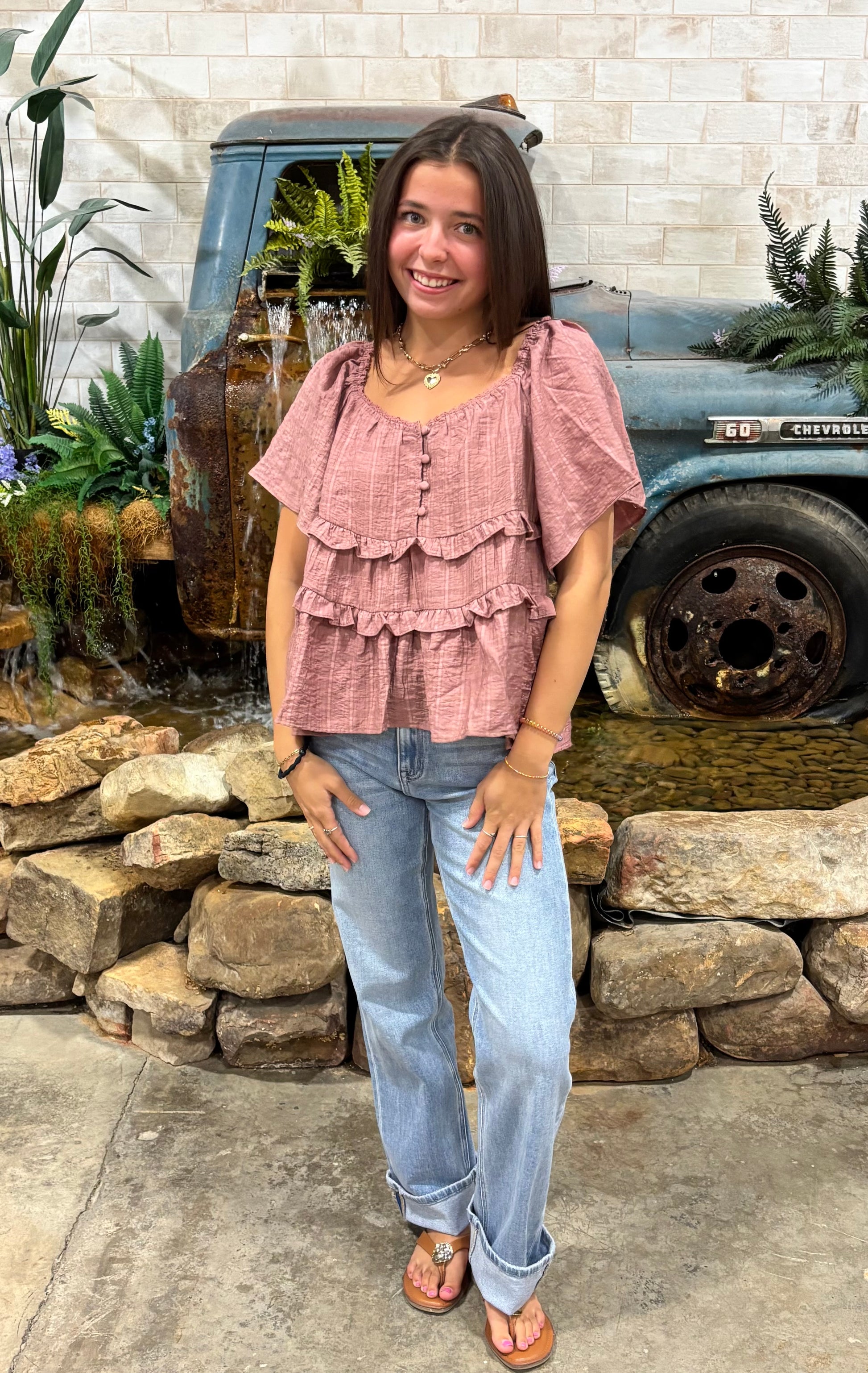 This By Together blouse offers a soft, breathable feel with its 80% rayon and 20% tencel blend. Designed with a flattering V-neckline, short cap sleeves, and a chic half button-front, it’s an effortless piece that transitions beautifully from casual days to the office. Lightweight and easy to style for any occasion.